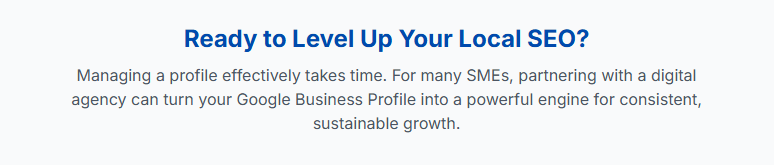 For many SMEs, managing a Google Business Profile effectively requires dedicated time, technical know-how, and ongoing optimization, making a digital agency a valuable partner to maximize local visibility and customer engagement.